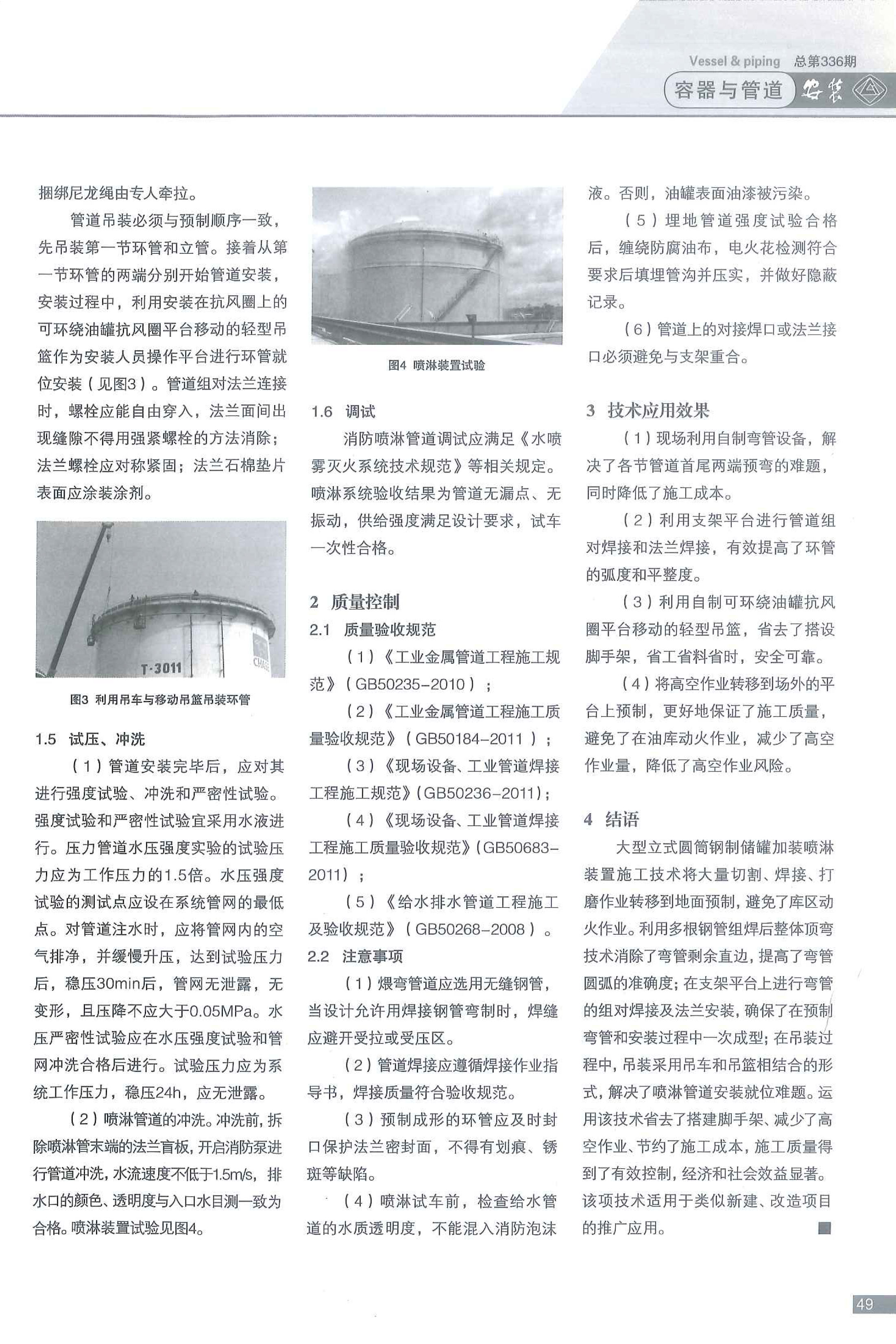大型立式鋼制儲罐加裝噴淋管道施工技術